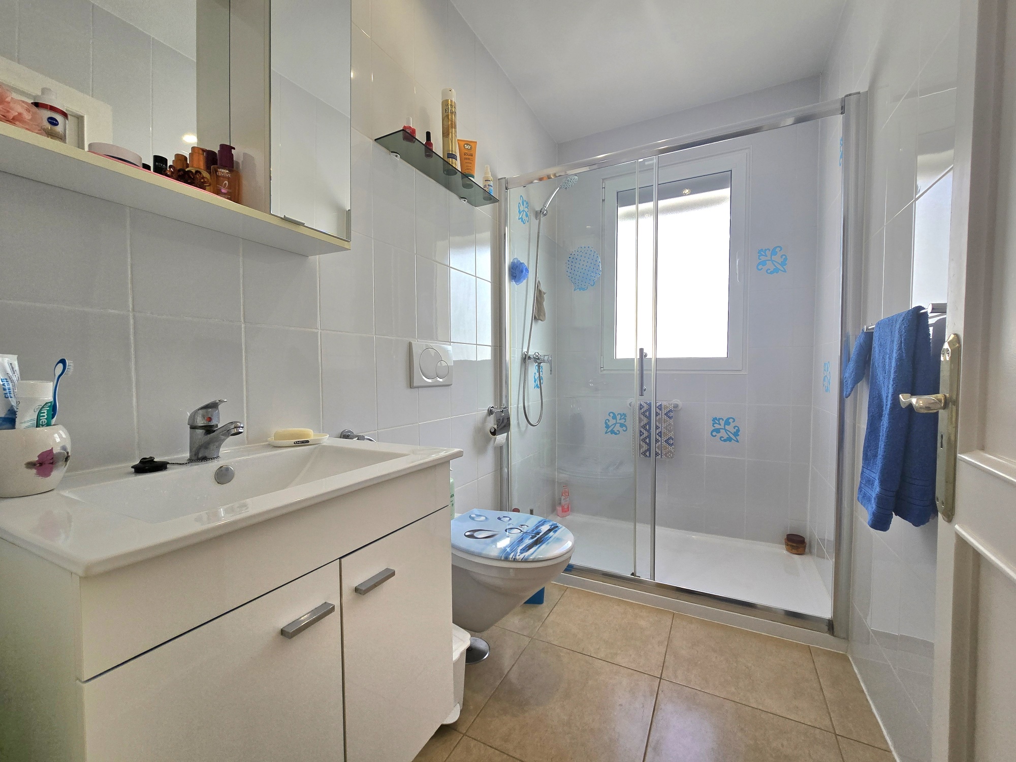 - Neuwertiges Badezimmer mit Dusche, WC, Waschbecken & Fenster zum Belüften