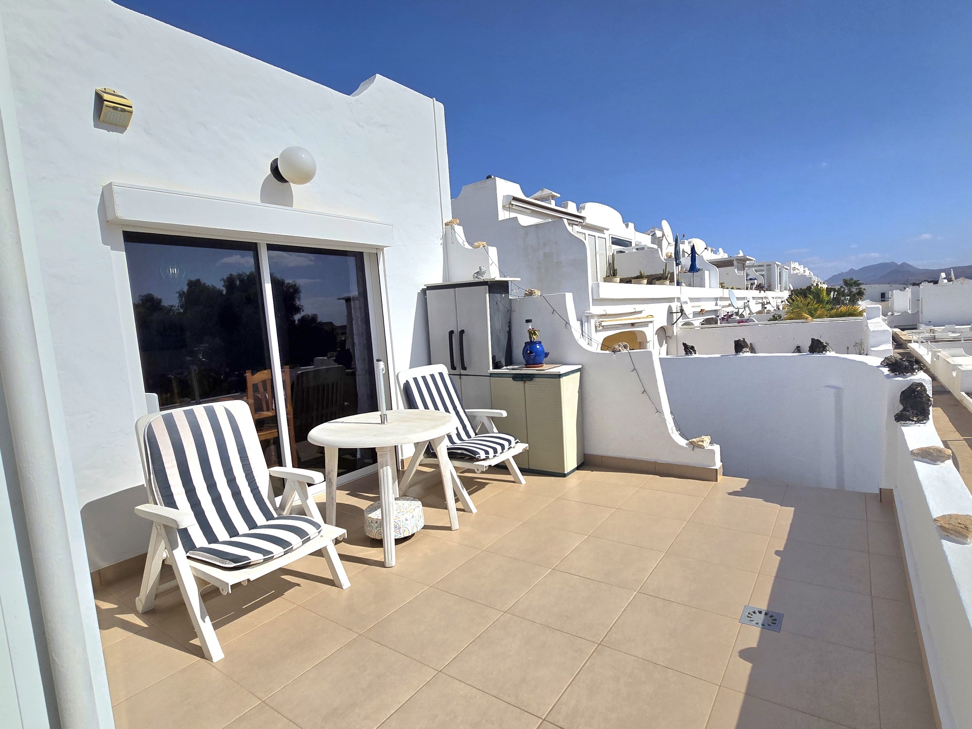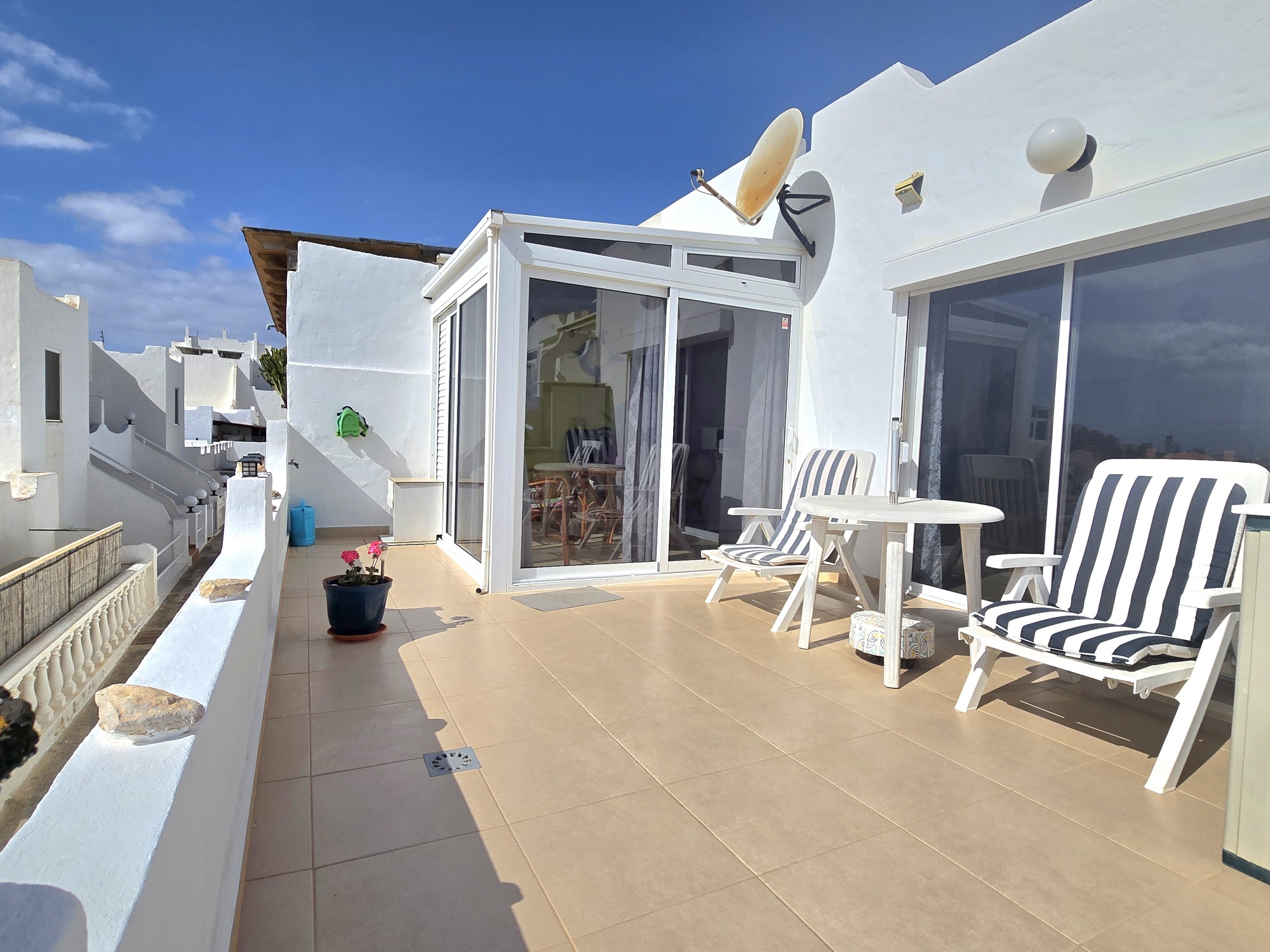 - Große Sonnenterrasse, auch begehbar von der Seite (um die Immobilie herum)