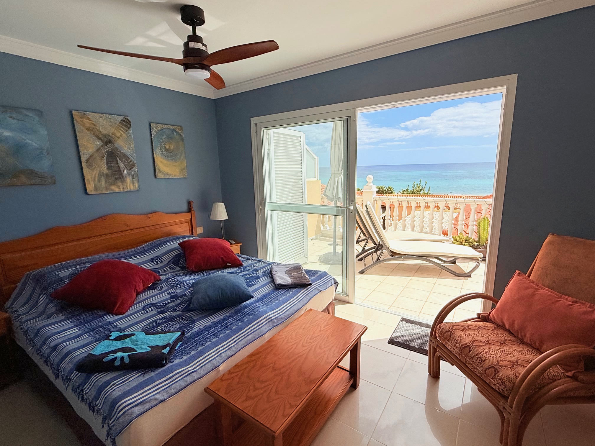 • 2 Schlafzimmer eins davon mit Badezimmer en Suite (Dusche), beide mit Zugang zur Terrasse sowie mit Meerblick,