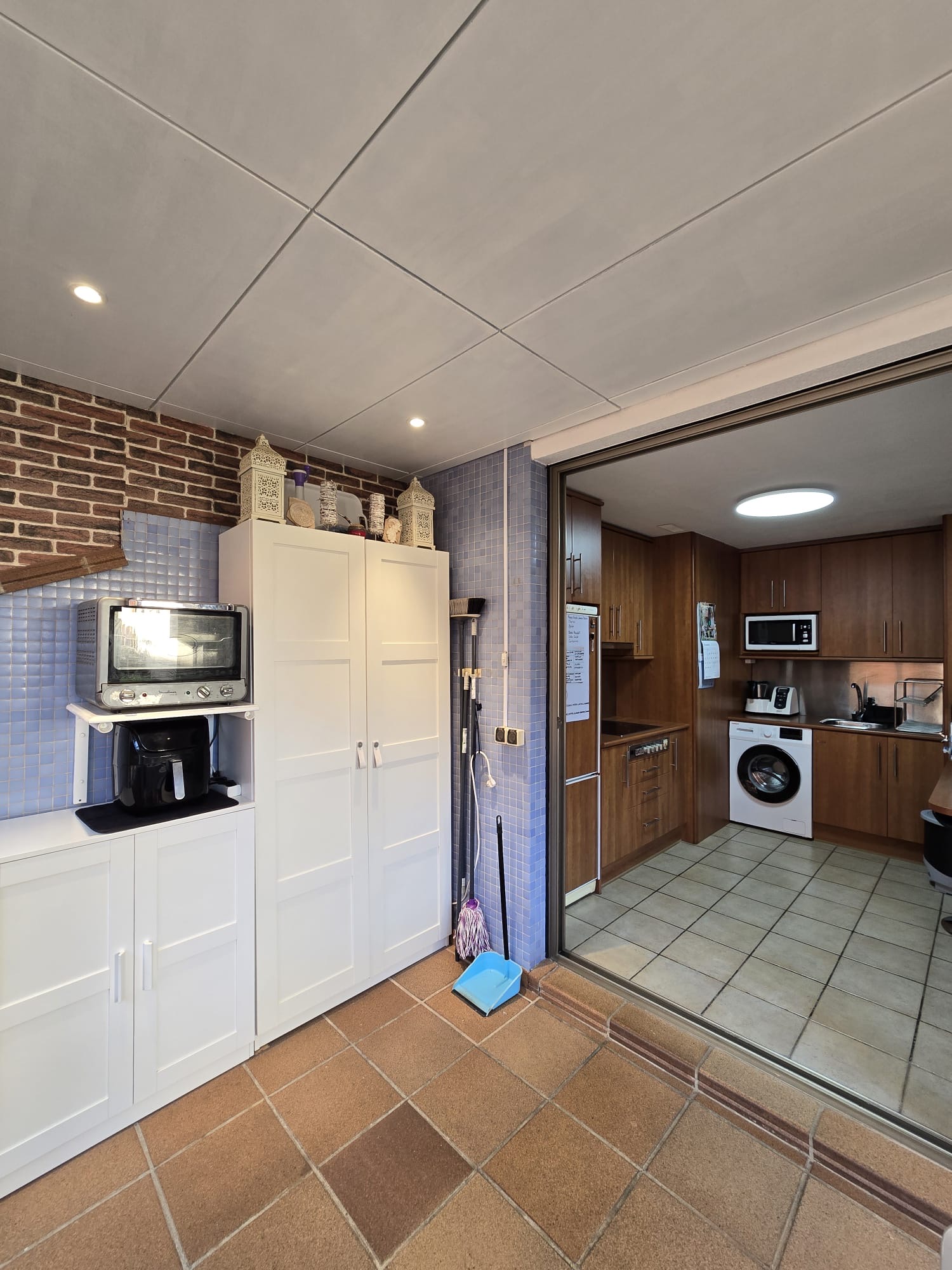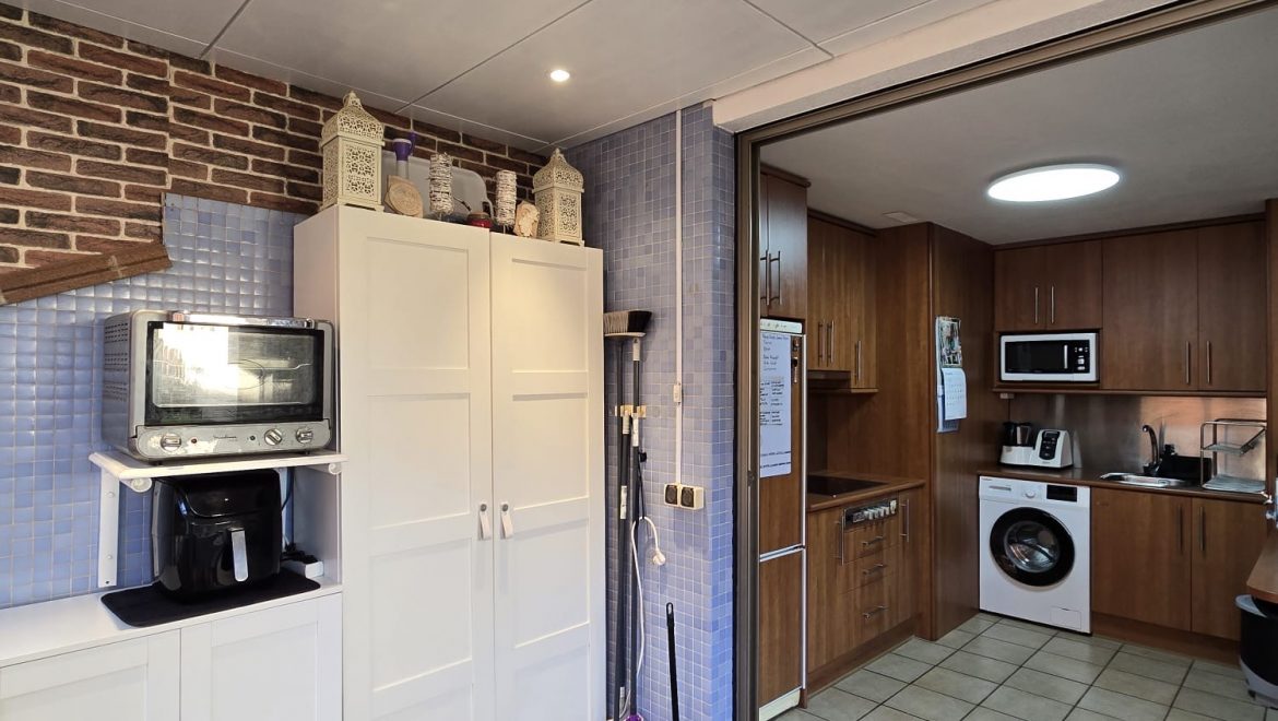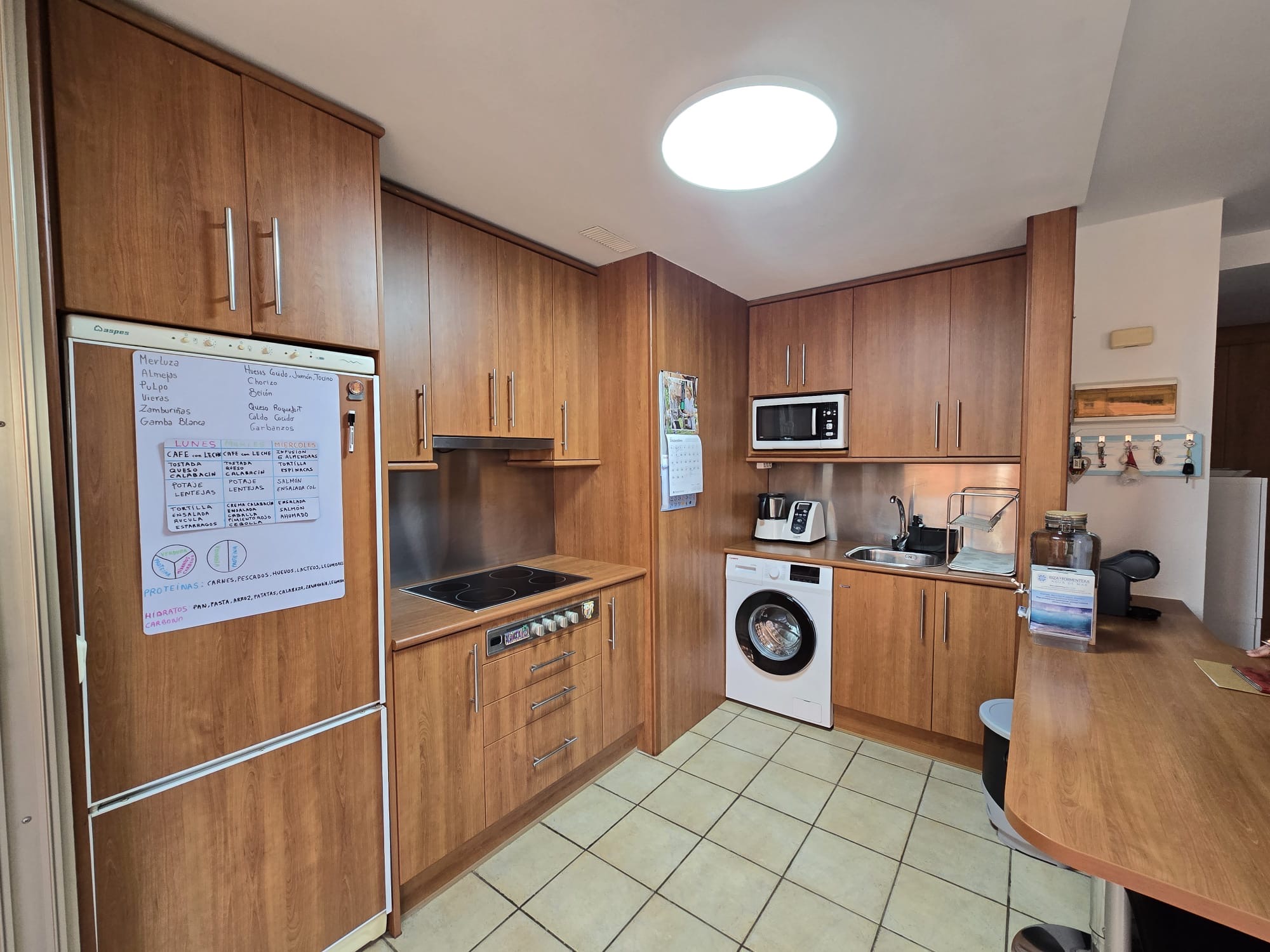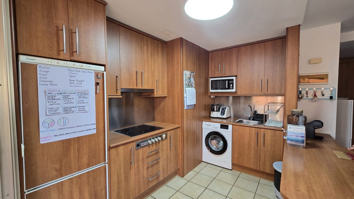 - Küche: Kühl- Gefrierkombi, Mikrowelle, Ceranfeld mit Dunstabzugshaube, Tischofen, Waschmaschine