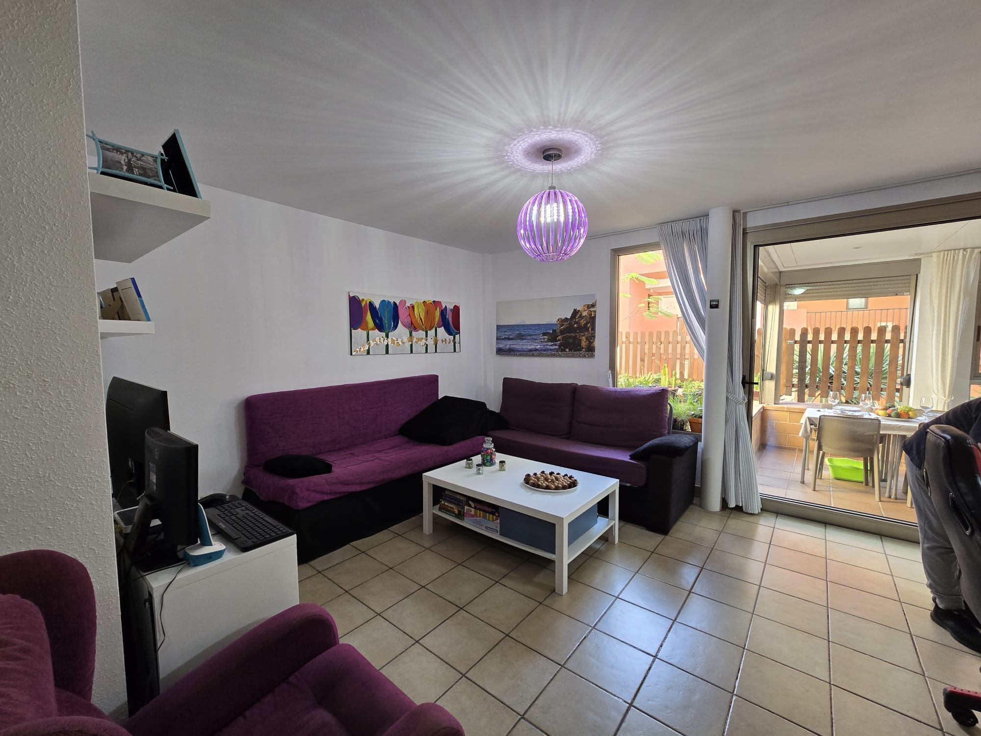 - Wohnzimmer mit Schlafsofa und Zugang zur Terrasse