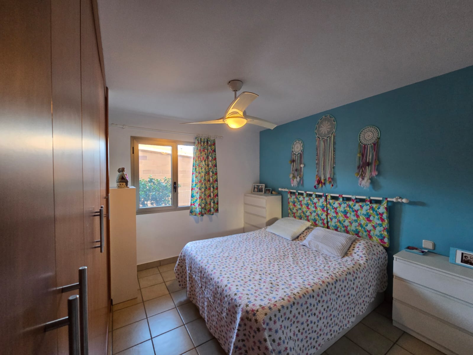 - 1 helles Schlafzimmer mit Einbauschrank, Deckenventilator