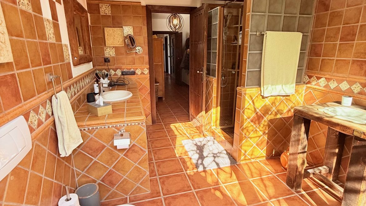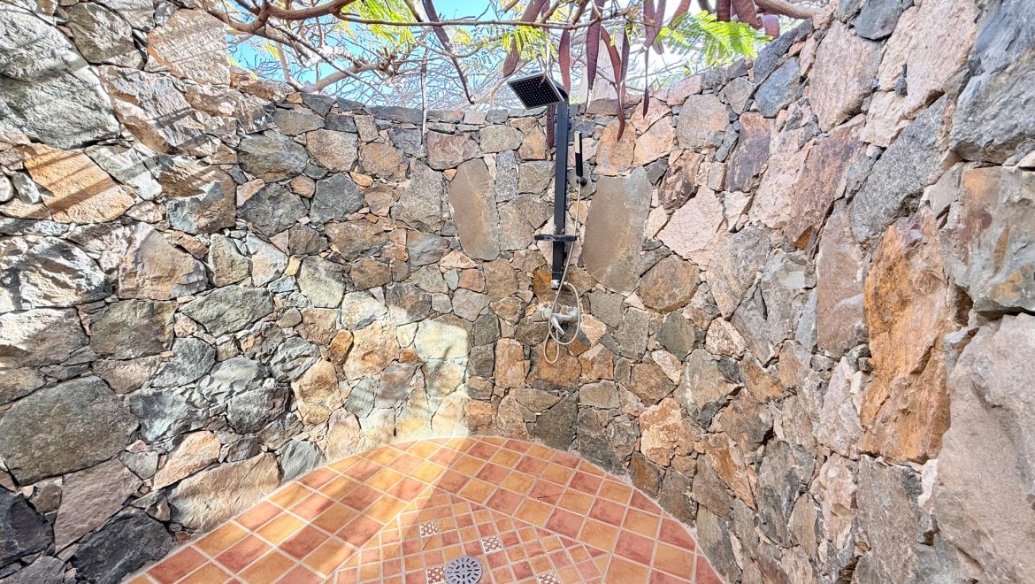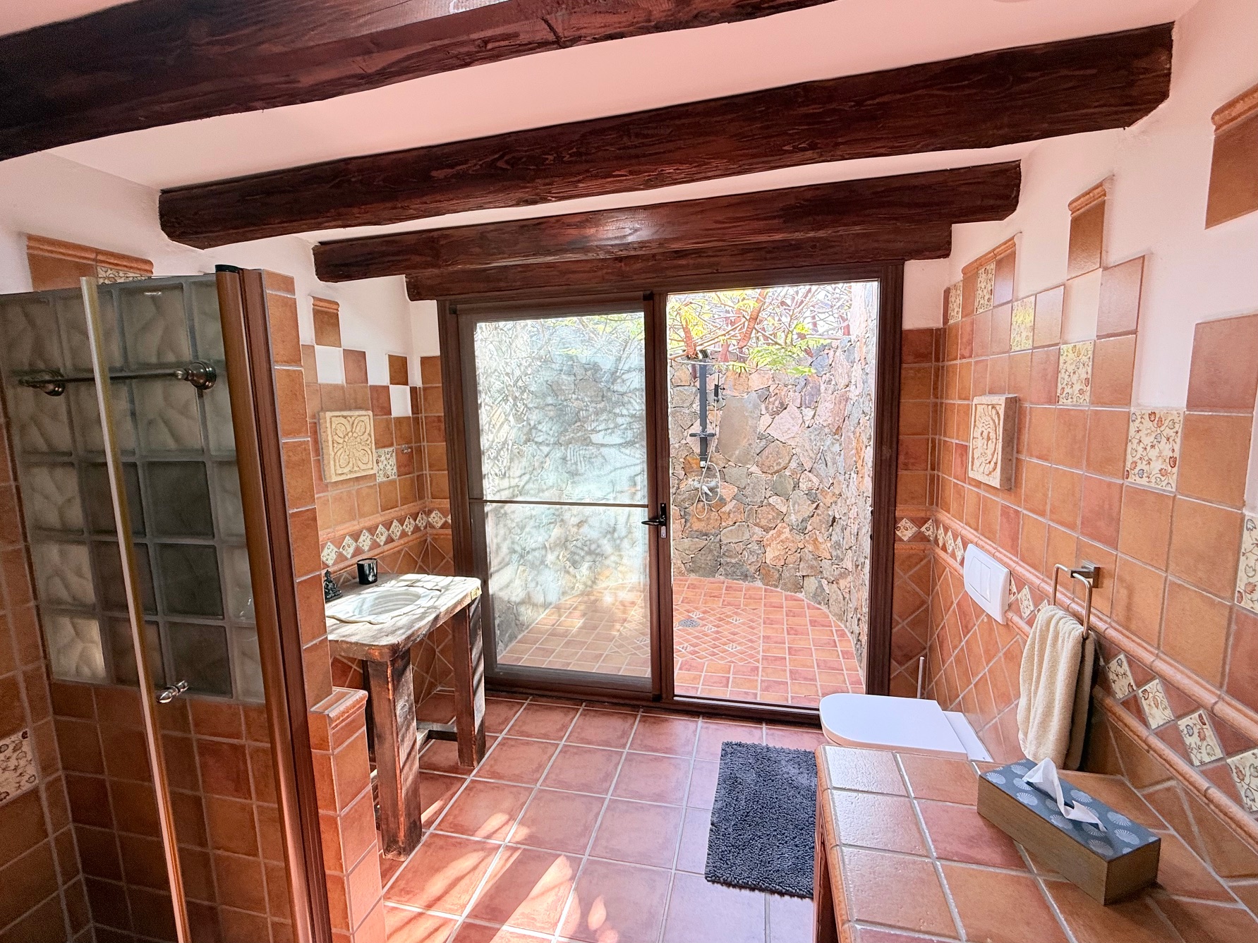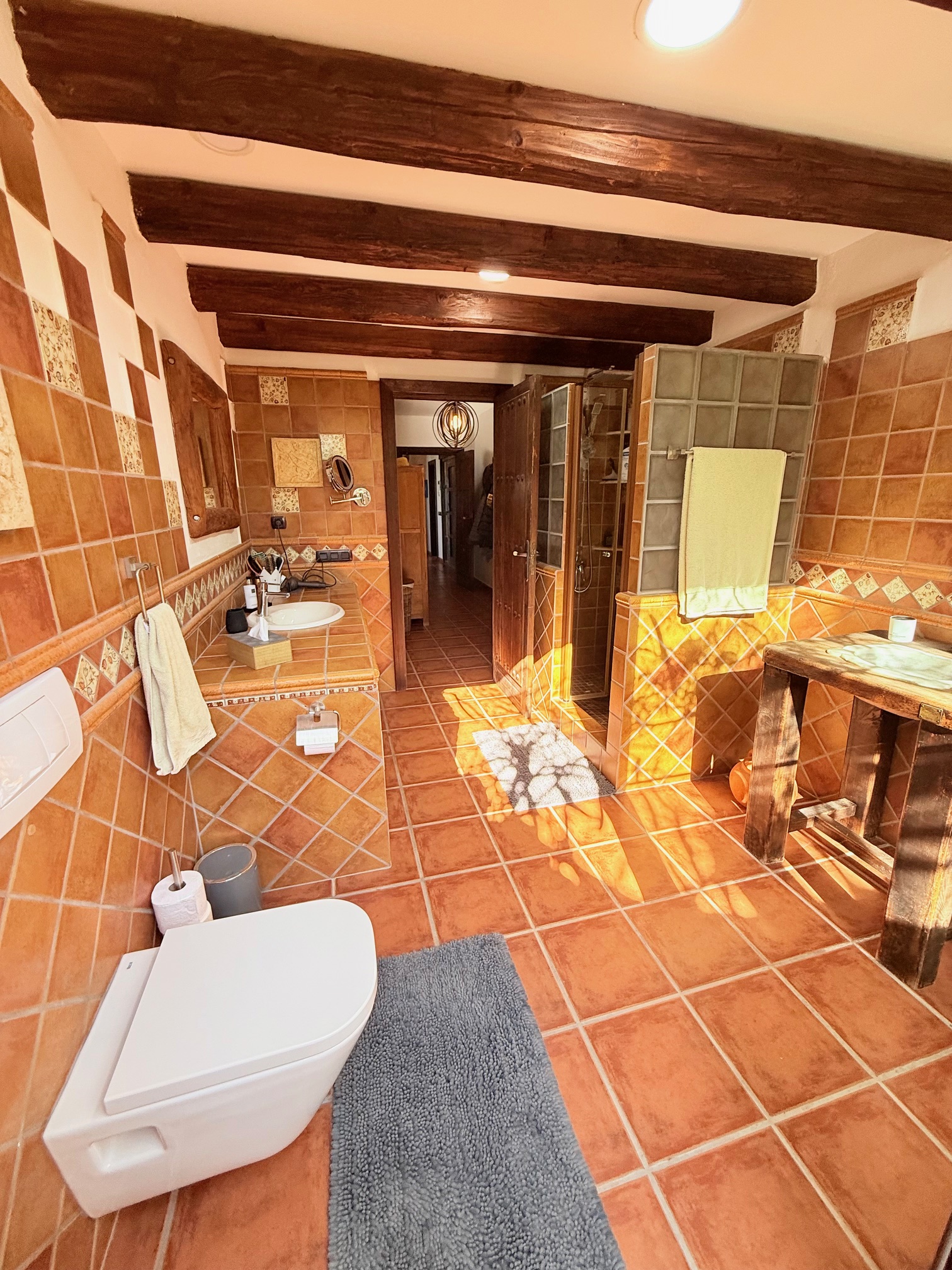 - Insgesamt 4 Badezimmer, mit Dusche sowie Master mit Badewanne, WC, Waschbecken, eines davon mit Outdoor-Dusche in Steinoptik