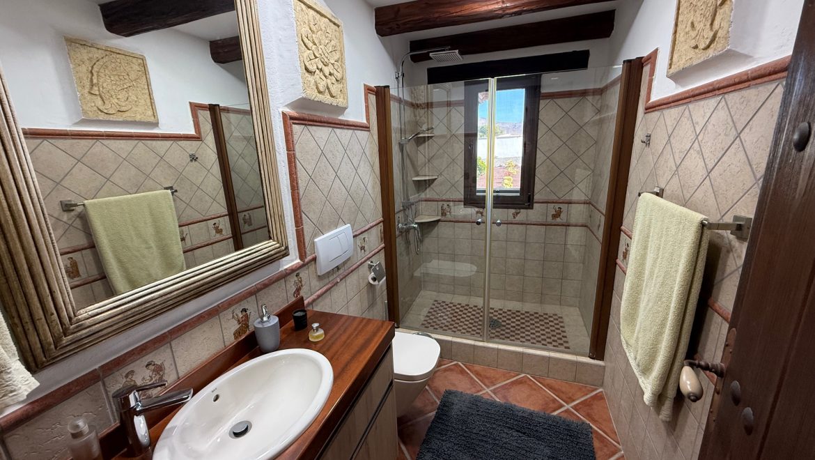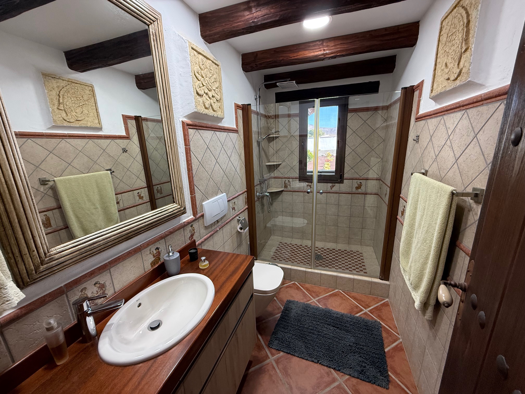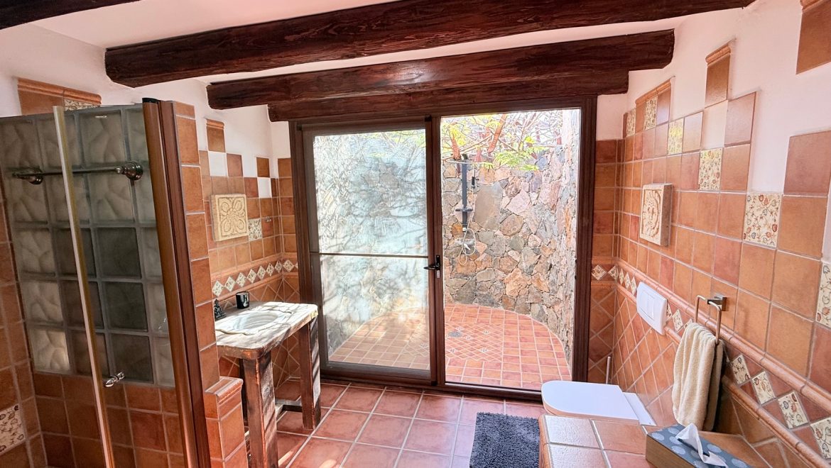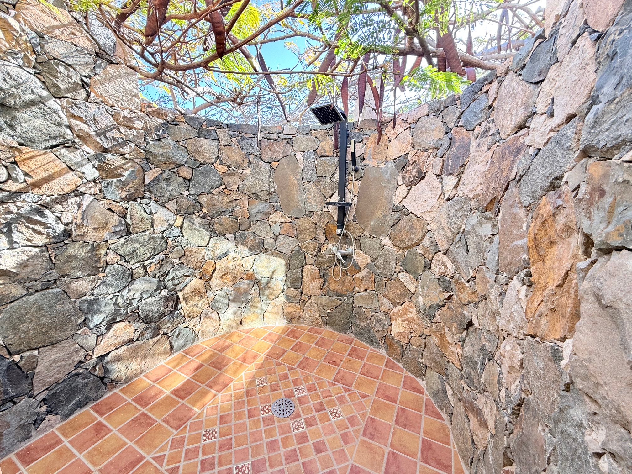 - Insgesamt 4 Badezimmer, mit Dusche sowie Master mit Badewanne, WC, Waschbecken, eines davon mit Outdoor-Dusche in Steinoptik