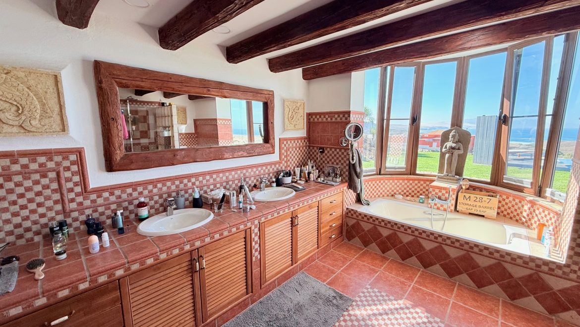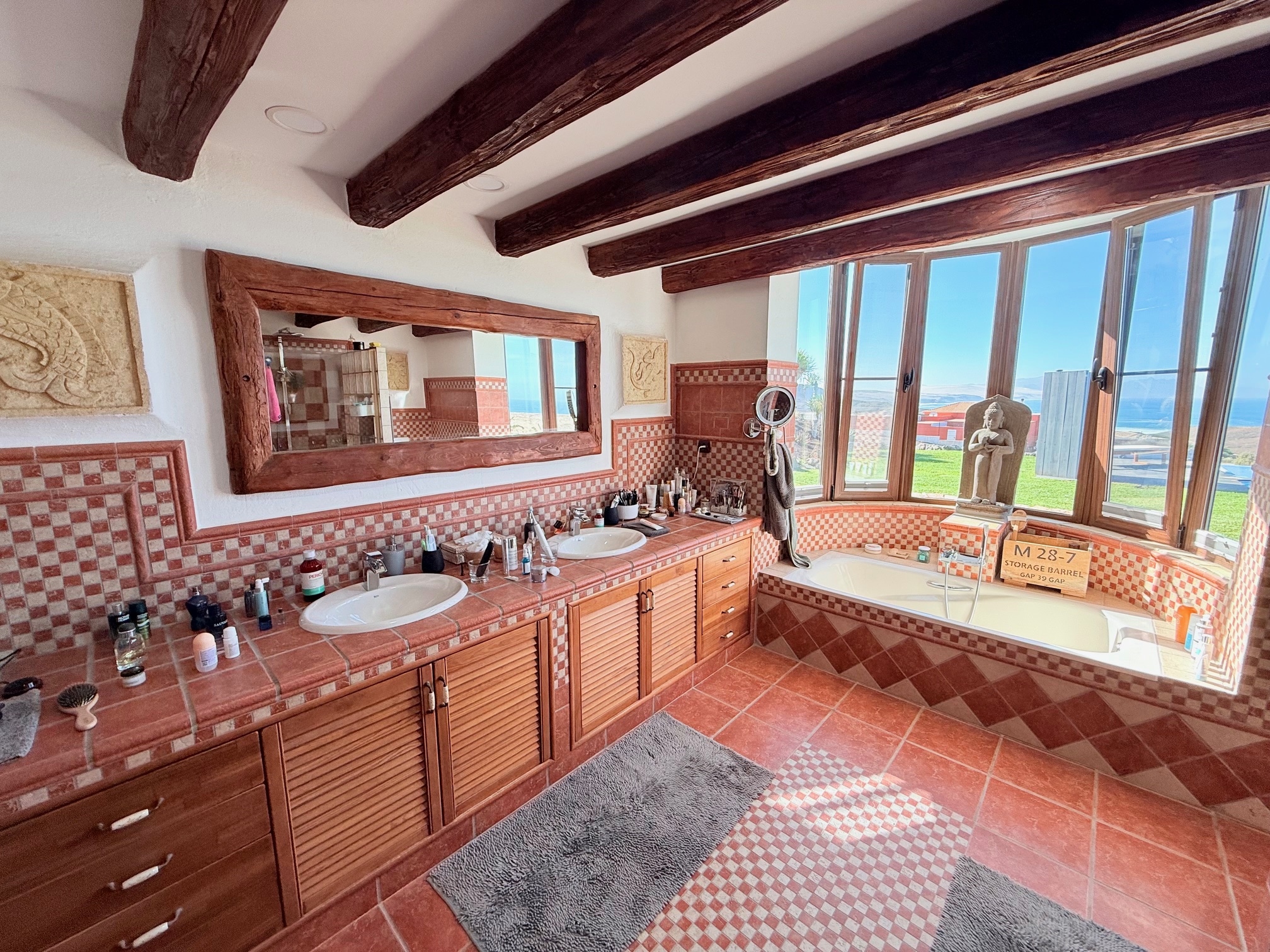 - Schlafzimmer 1: Masterschlafzimmer mit eigenem Badezimmer (Dusche sowie Badewanne mit Meerblick), begehbarer Kleiderschrank,